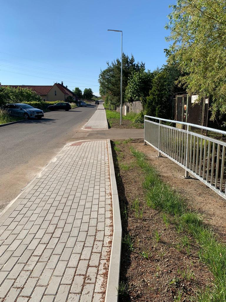 Nový chodník k podchodu pod tratí ČD je prozatím dokončen. Po rekonstrukci železniční tratě v úseku Kyjice – Chomutov, bude nový chodník propojovat obec s obchodním centrem za železniční tratí. Chodník je umístěný na levé i pravé straně ulice U Hřiště a byl realizován za přispění finančních prostředků Ústeckého kraje.