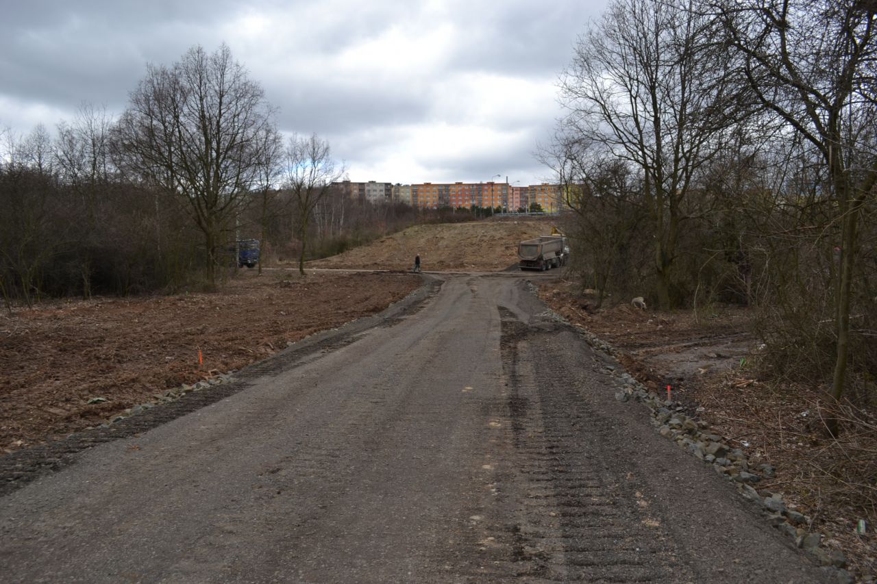 V úseku u Dopravního podniku se již čile pracuje. V dalším úseku zatím probíhá příprava stavby.